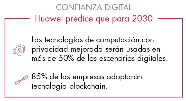 En 2030 la confianza digital será un requisito básico para nuestra infraestructura social. Necesitaremos una combinación de medidas técnicas y organizacionales: blockchain, detección de fraudes con AI, y cómputo que refuerce la protección de la privacidad. Lo anterior hará necesario regulaciones de privacidad y seguridad como la Regulación de protección general de los datos (GDPR por sus siglas en inglés). En combinación, estas medidas ofrecerán un mundo inteligente con confianza digital.