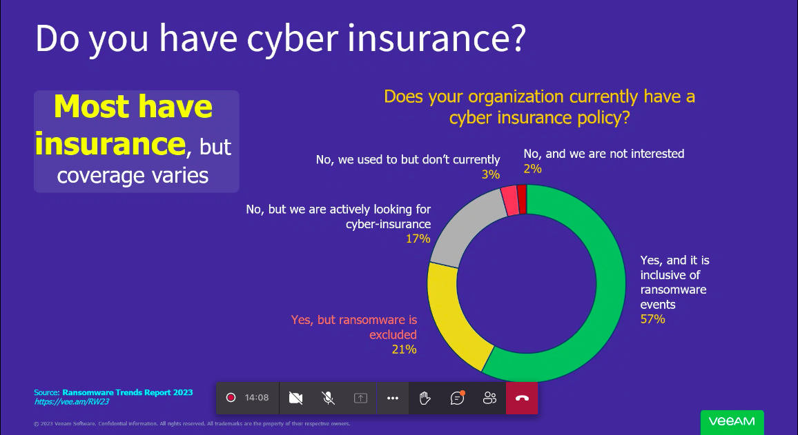 El vicepresidente de Estrategia Empresarial en Veeam, Dave Russell, señaló en conferencia de prensa que diversas compañías que cuentan con un ciberseguro notaron cambios significativos al querer renovar sus pólizas.