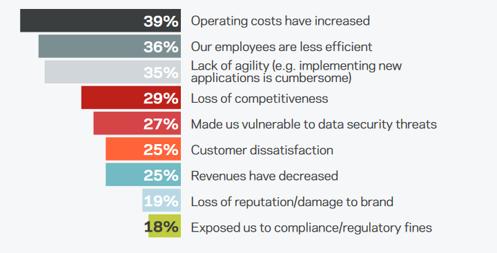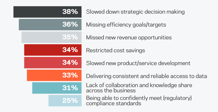 95% de los consultados indicaron que su organización ha sufrido impactos significativos de largo plazo por culpa de una mala gestión de datos.