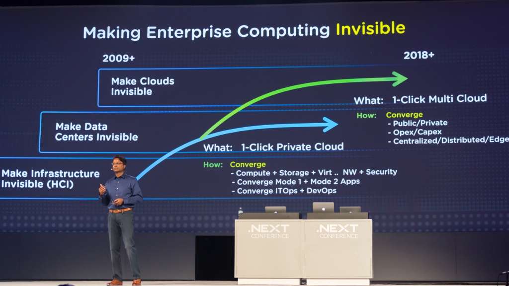 El discurso de la invisibilidad se escucharía frecuentemente en las tres conferencias principales y a lo largo de todas las sesiones de la conferencia. Como explicó Sunil Potti, Chief product & development officer, Nutanix comenzó por hacer la infraestructura invisible, expandió esta característica al data center y ahora la intención es alcanzar la nube empresarial.