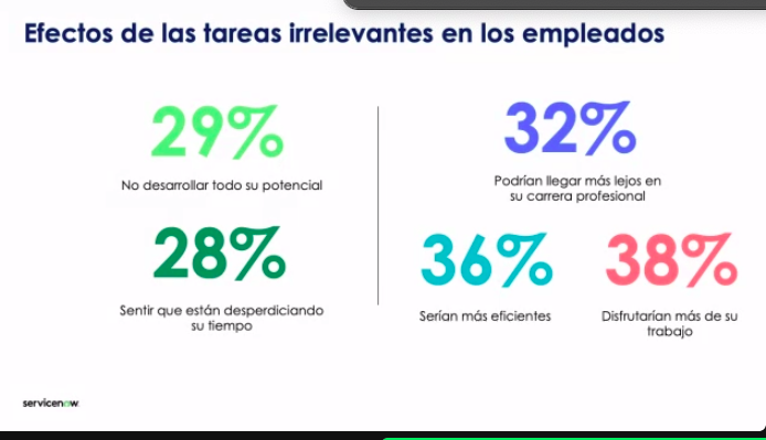 Según el estudio en el que participaron 500 trabajadores de diferentes compañías en México, cuatro de cada 10 empleados afirmaron que disfrutarían más su trabajo y serían más productivos, si no tuvieran que hacer tantas tareas irrelevantes o repetitivas.