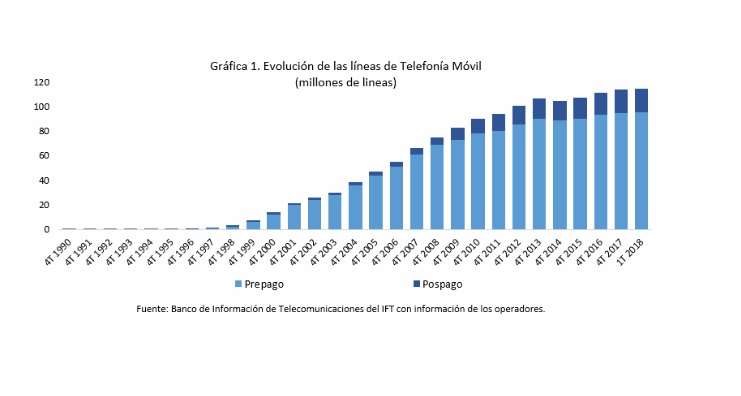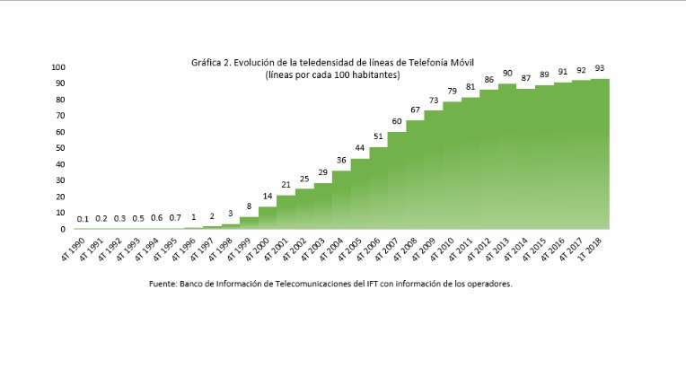 Para los interesados en ver cómo ha cambiado históricamente los números del servicio de telefonía móvil en el país, el Banco de Información de Telecomunicaciones (BIT) del IFT ofrece por primera vez cifras a partir de diciembre de 1990 y hasta el primer trimestre de 2018. En dicho periodo, la tasa de crecimiento promedio anual fue de 37%, que pasó de menos de 64 mil líneas a más de 115 millones.